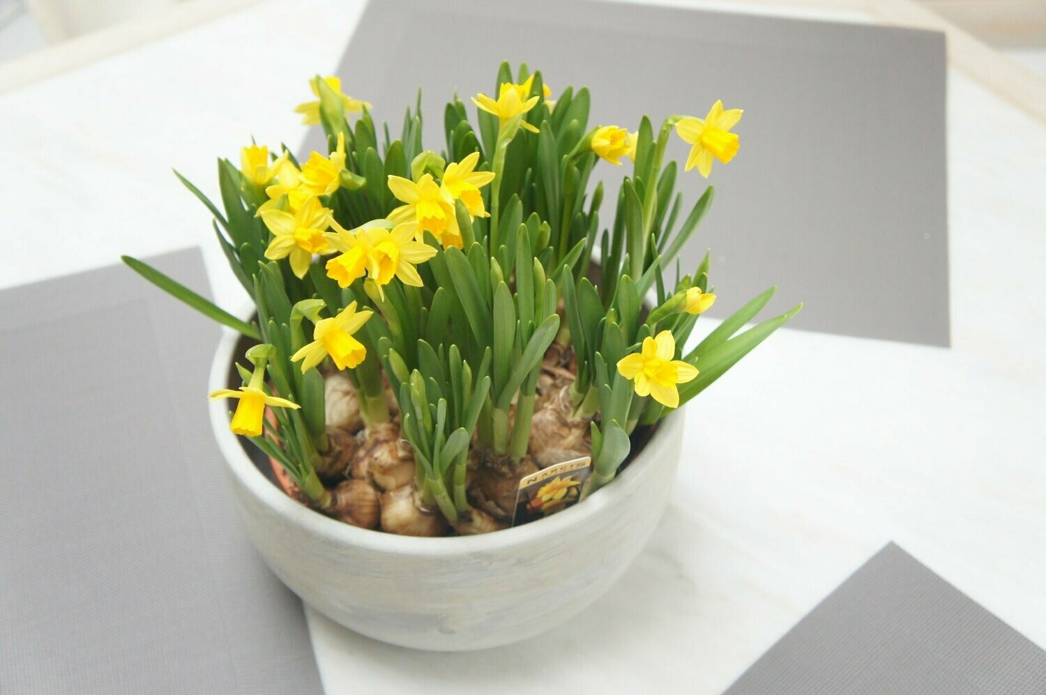 Jonquilles en pot agrémentées d'un jolie cache-pot (selon arrivage)